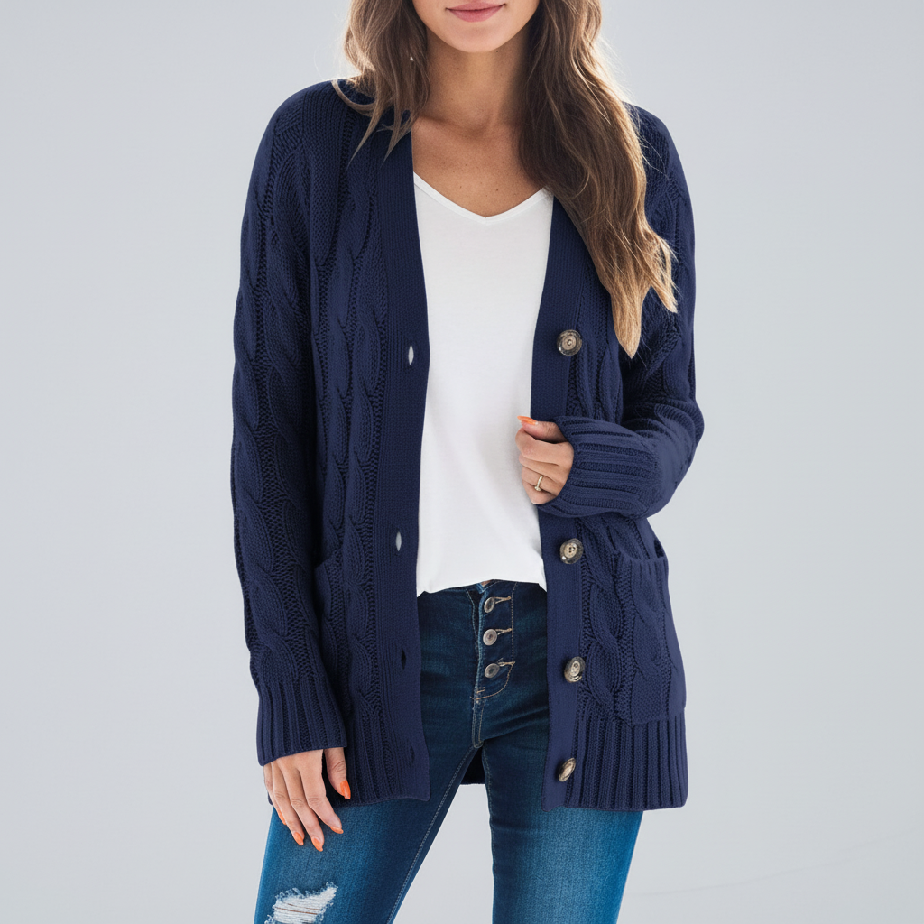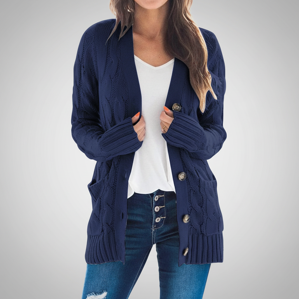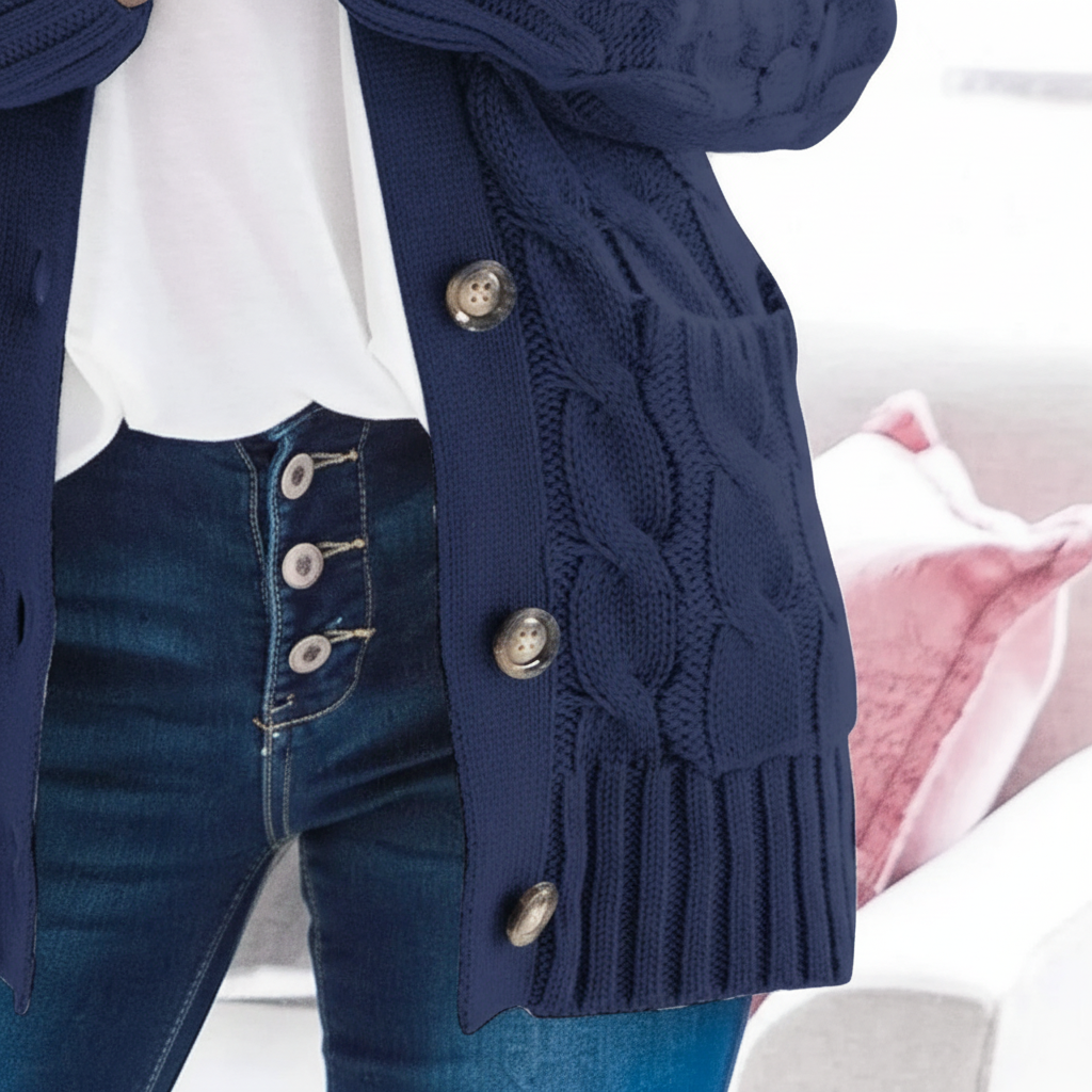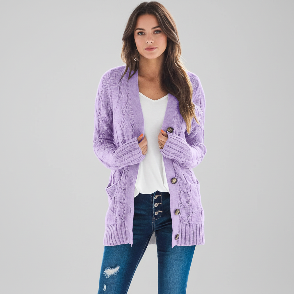 Es kann herausfordernd sein, ein passendes Kleidungsstück zu finden, das sowohl stilvoll als auch bequem ist. Dieses Jäckchen vereint beides durch sein weiches, atmungsaktives Material und das stilvolle Kabelmuster. Egal, ob über einer Bluse oder einem T-Shirt getragen, es bietet immer die nötige Wärme und verleiht Ihrer Ausstrahlung einen besonderen Charme. Mit praktischen Taschen und einer eleganten Knopfleiste ist es zudem alltagstauglich.