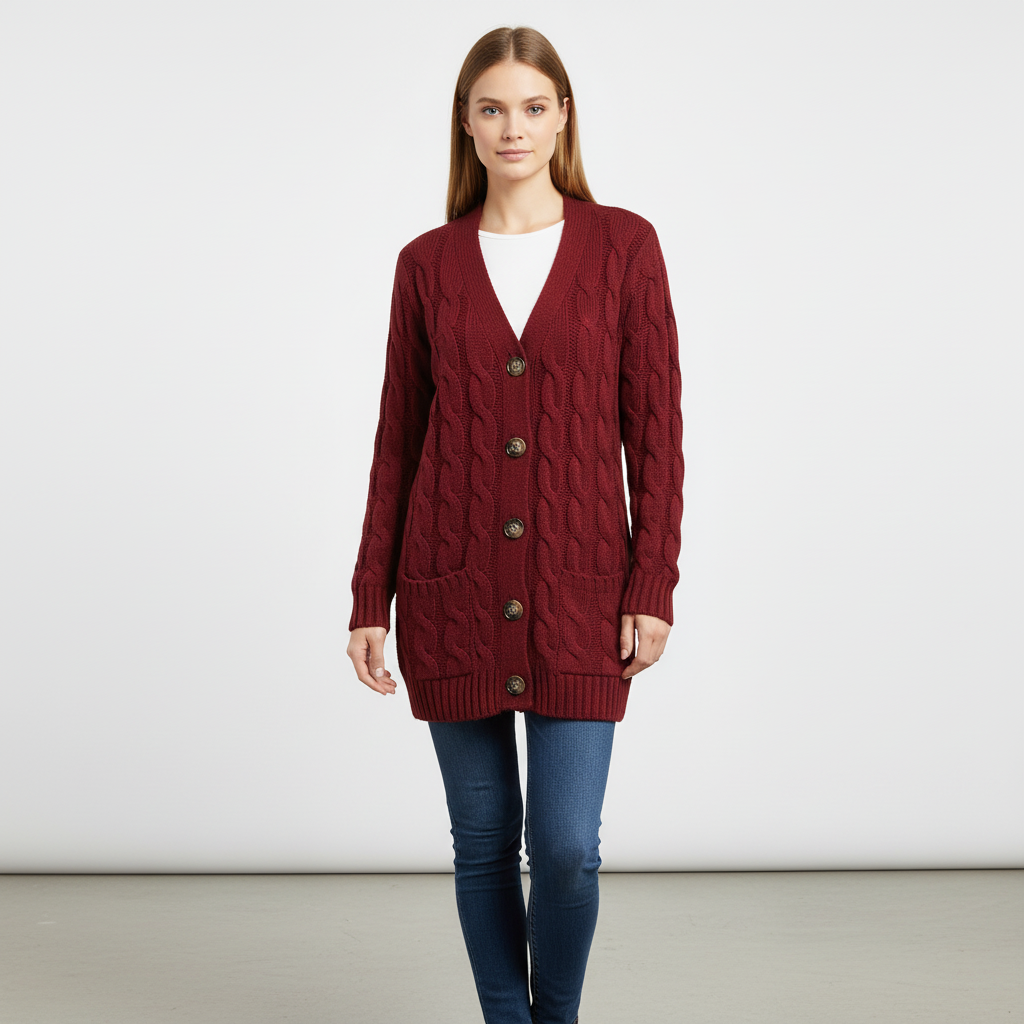 Das klassische Kabelmuster bleibt nie aus der Mode. Es verleiht jedem Outfit eine elegante Note.
