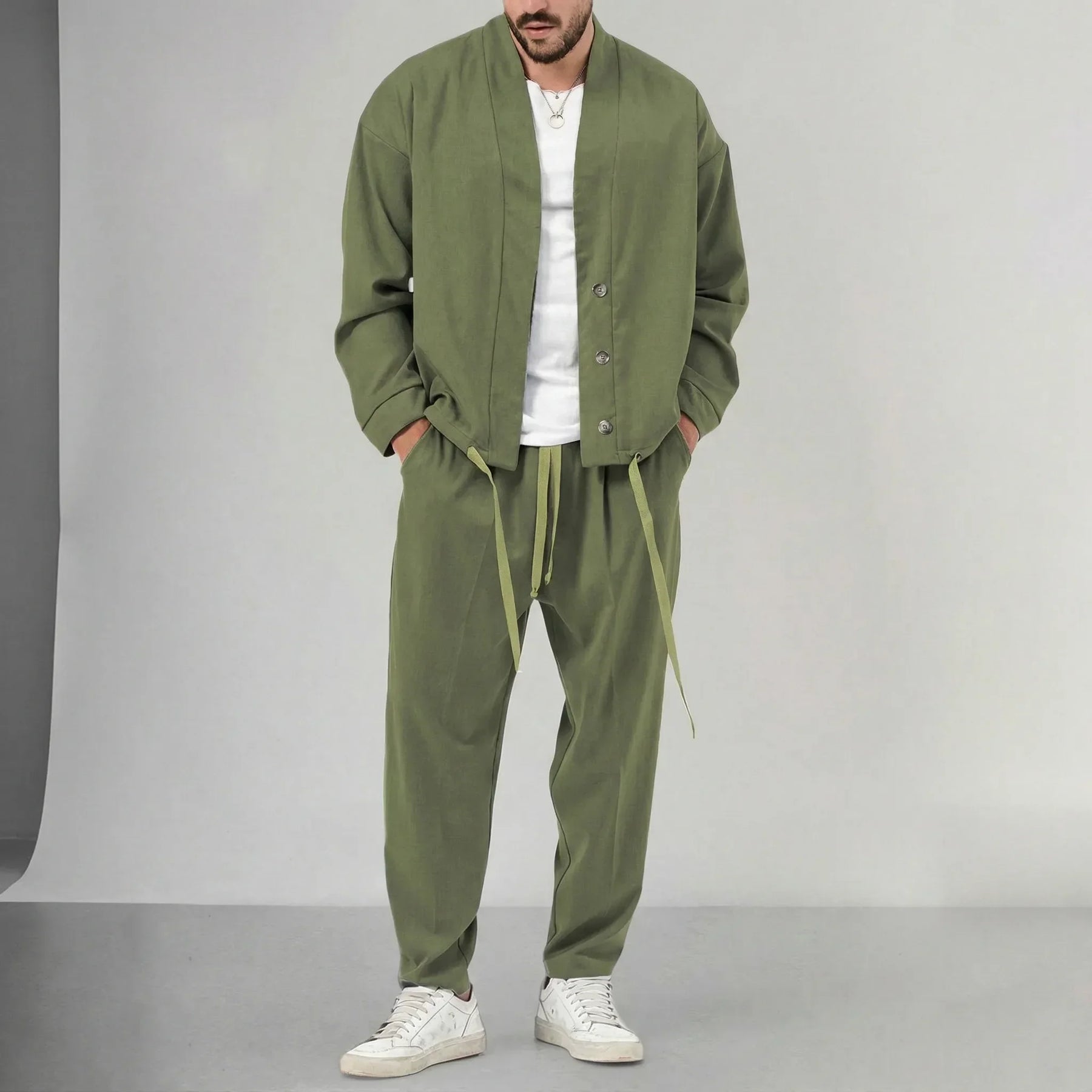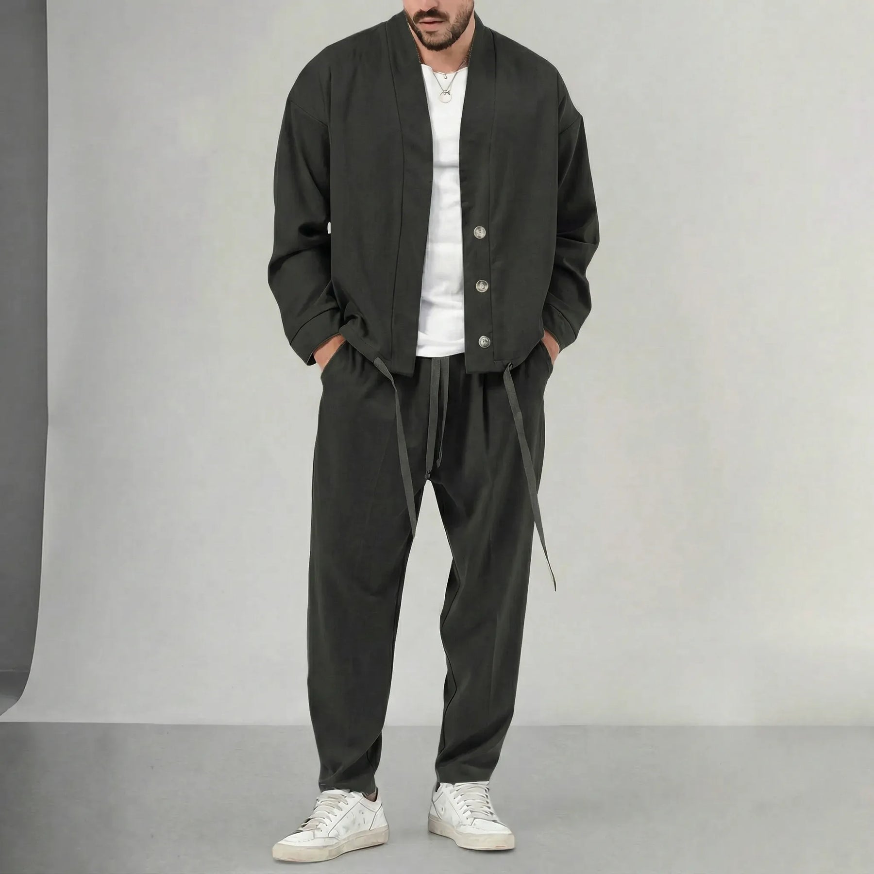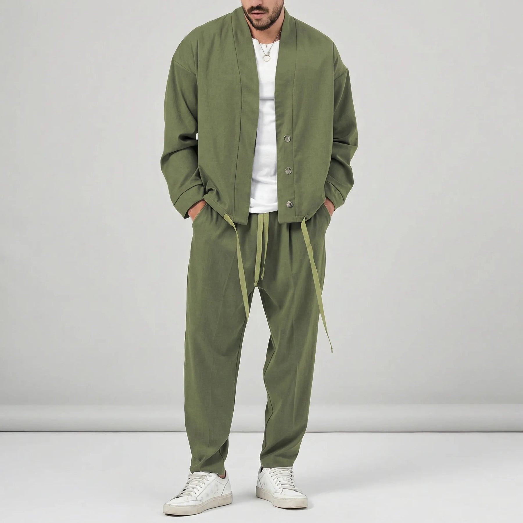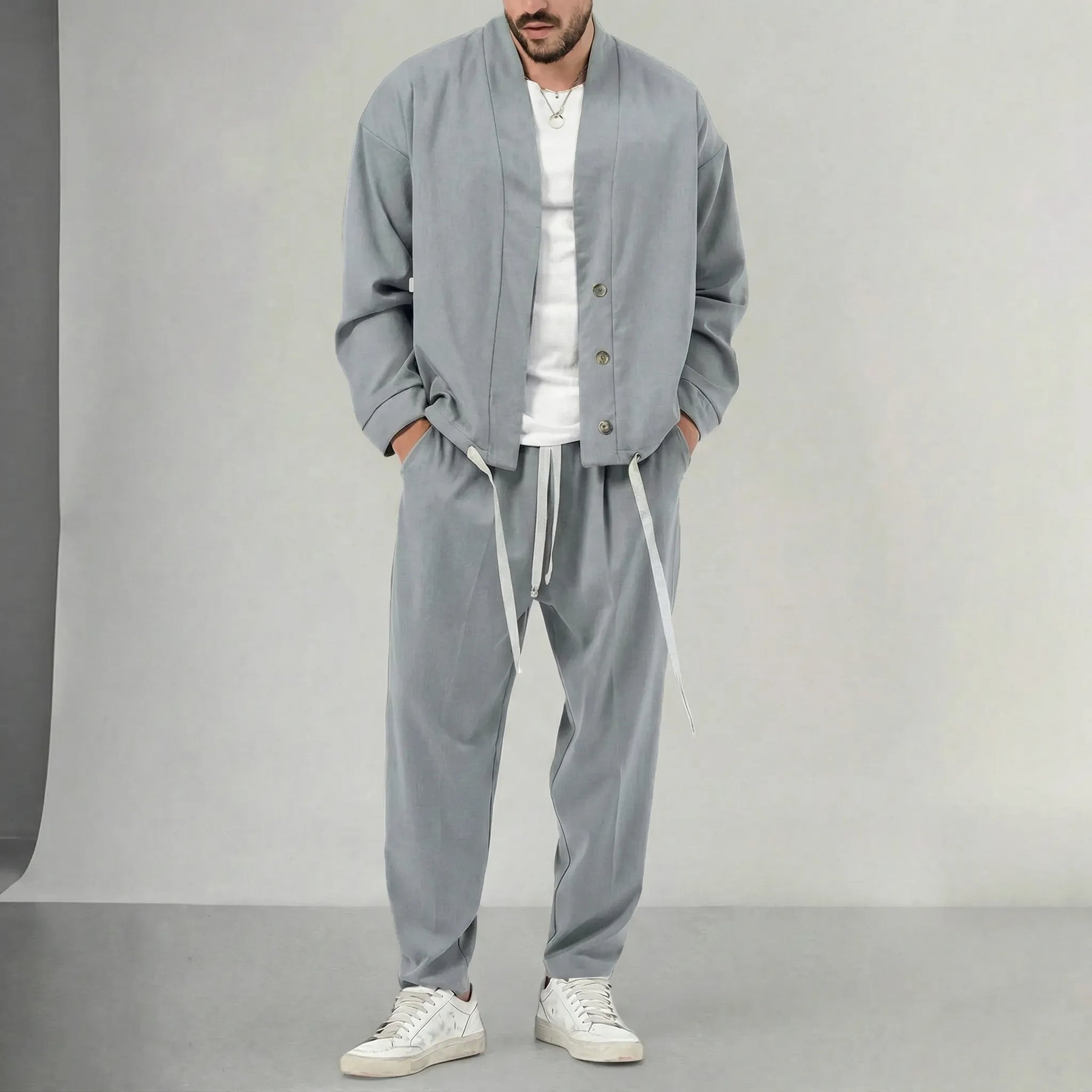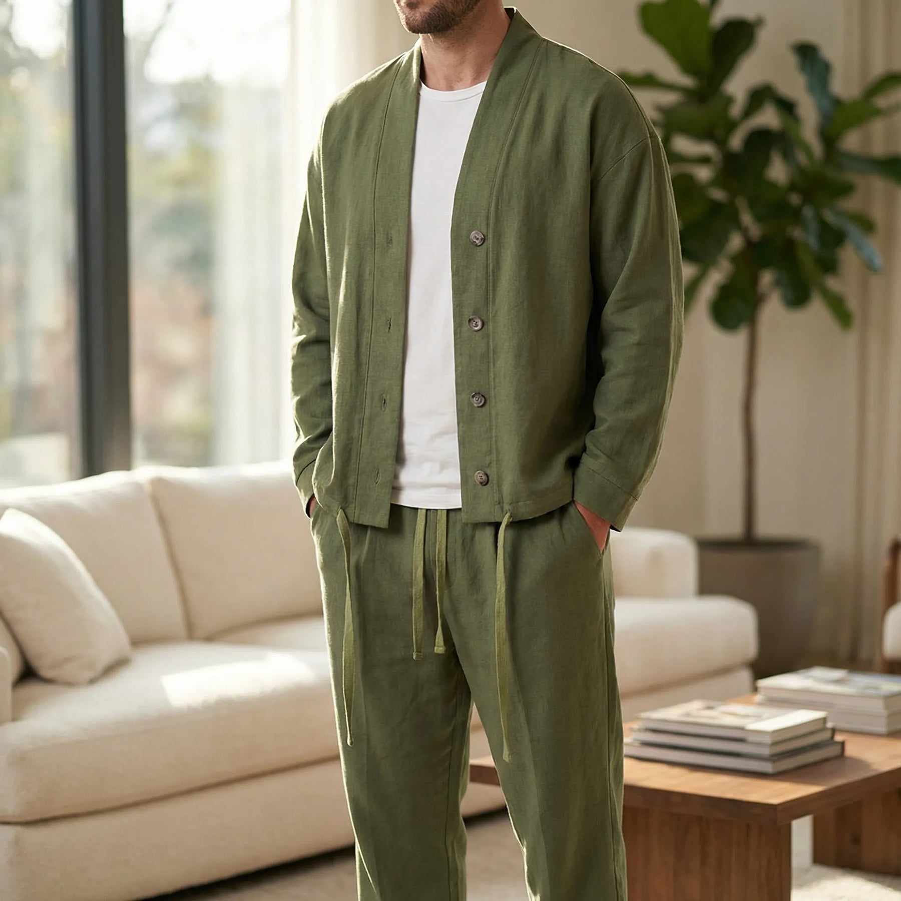 Entspannte Bequemlichkeit, die trotzdem gepflegt wirkt. Dieses aufeinander abgestimmte zweiteilige Set sorgt dafür, dass ruhige Tage durchdacht und vorzeigbar aussehen.