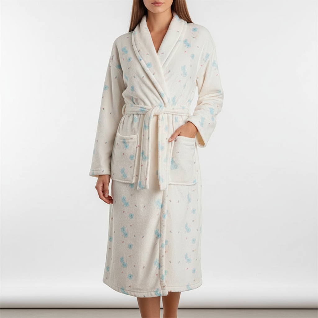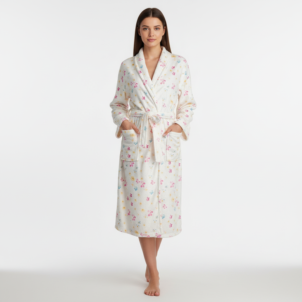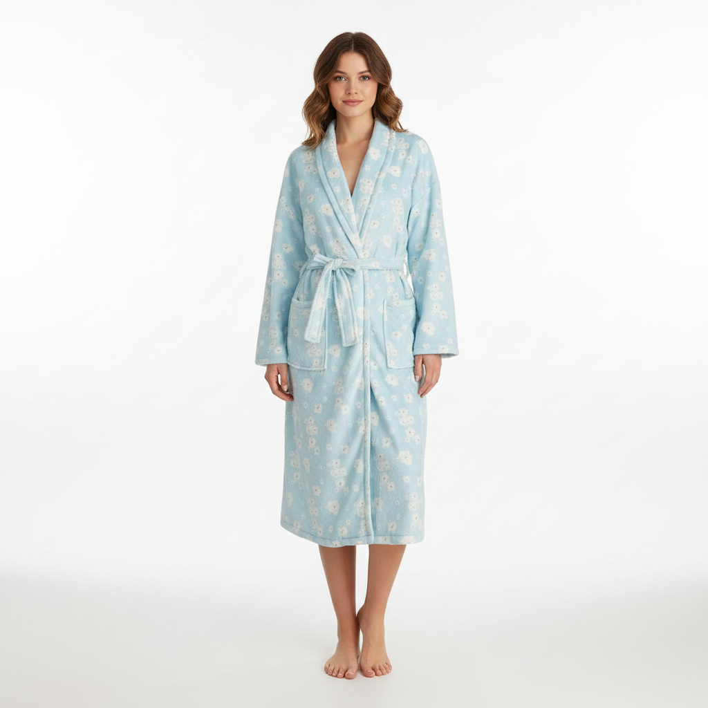 Kühle Morgen und ungemütliche Abende rauben oft den letzten Hauch von Entspannung. Ein kuscheliges Kleidungsstück, das wärmt und gleichzeitig stilvoll wirkt, schafft sofort Geborgenheit. Weicher Flanell umhüllt sanft die Haut und speichert behagliche Wärme. Das dezente Blumenmuster hebt die Stimmung und verleiht eine feminine Note.