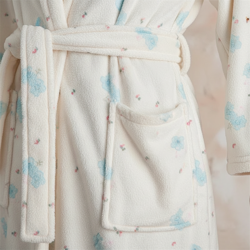 Das dezente Blumenmuster wirkt feminin und gepflegt. Es hebt Ihre Morgenroutine stilvoll hervor.