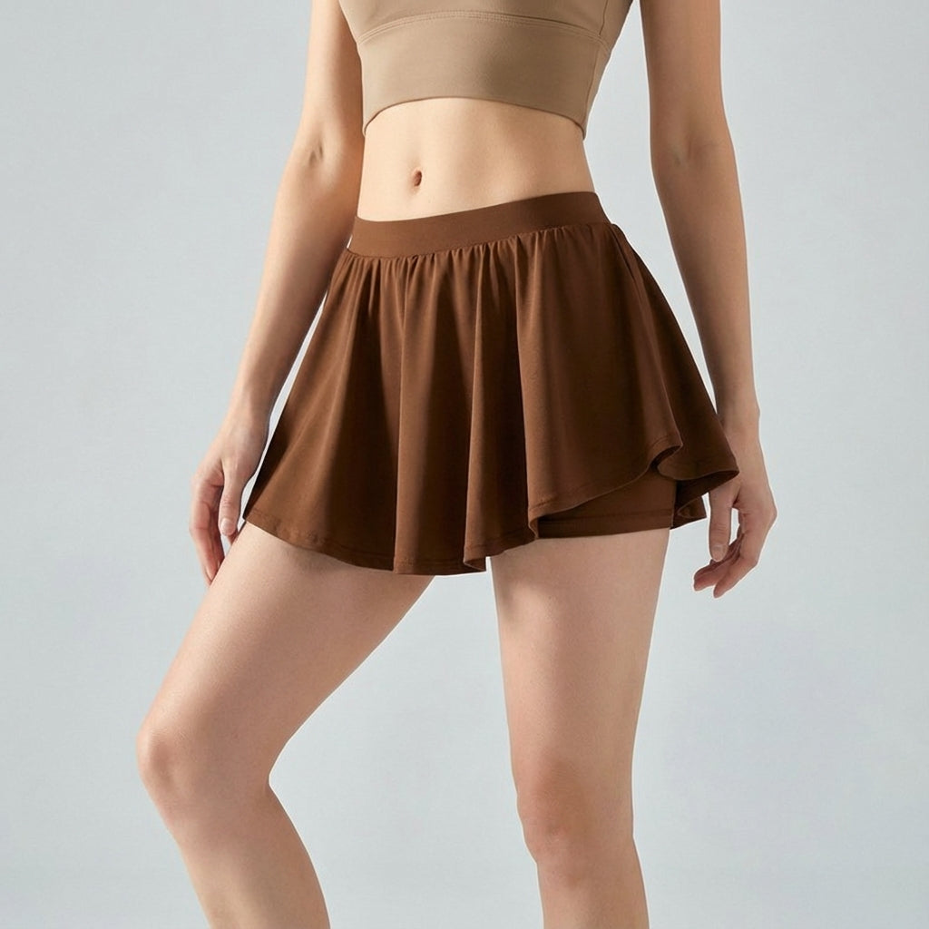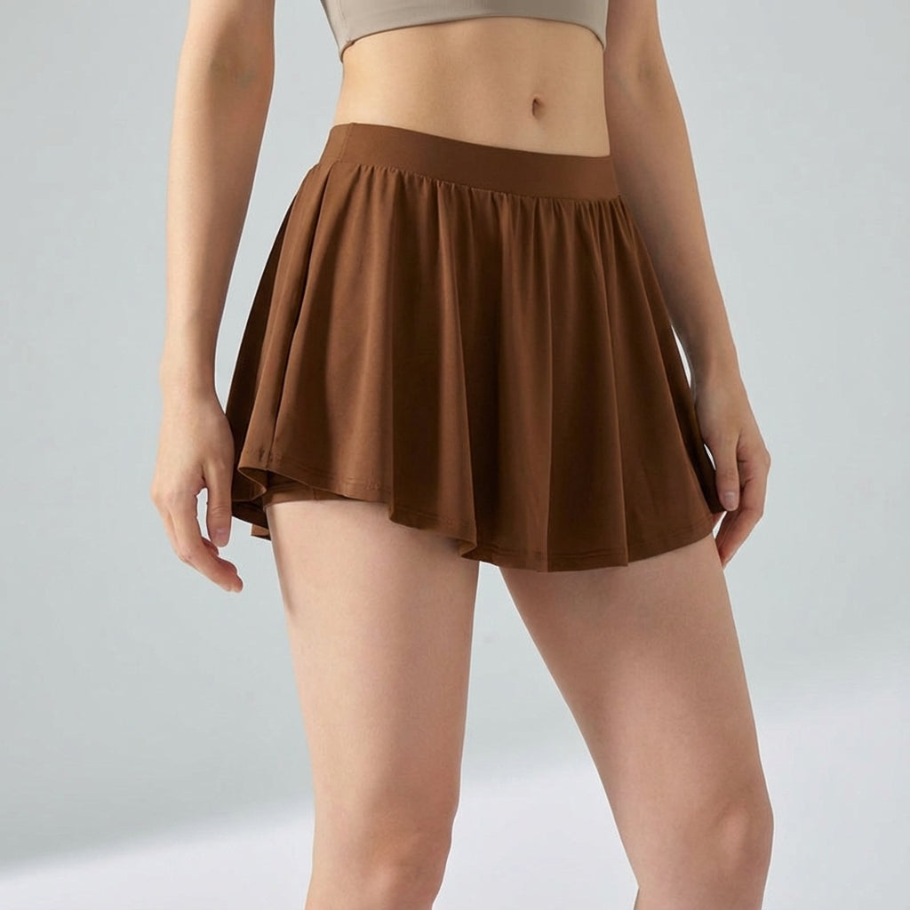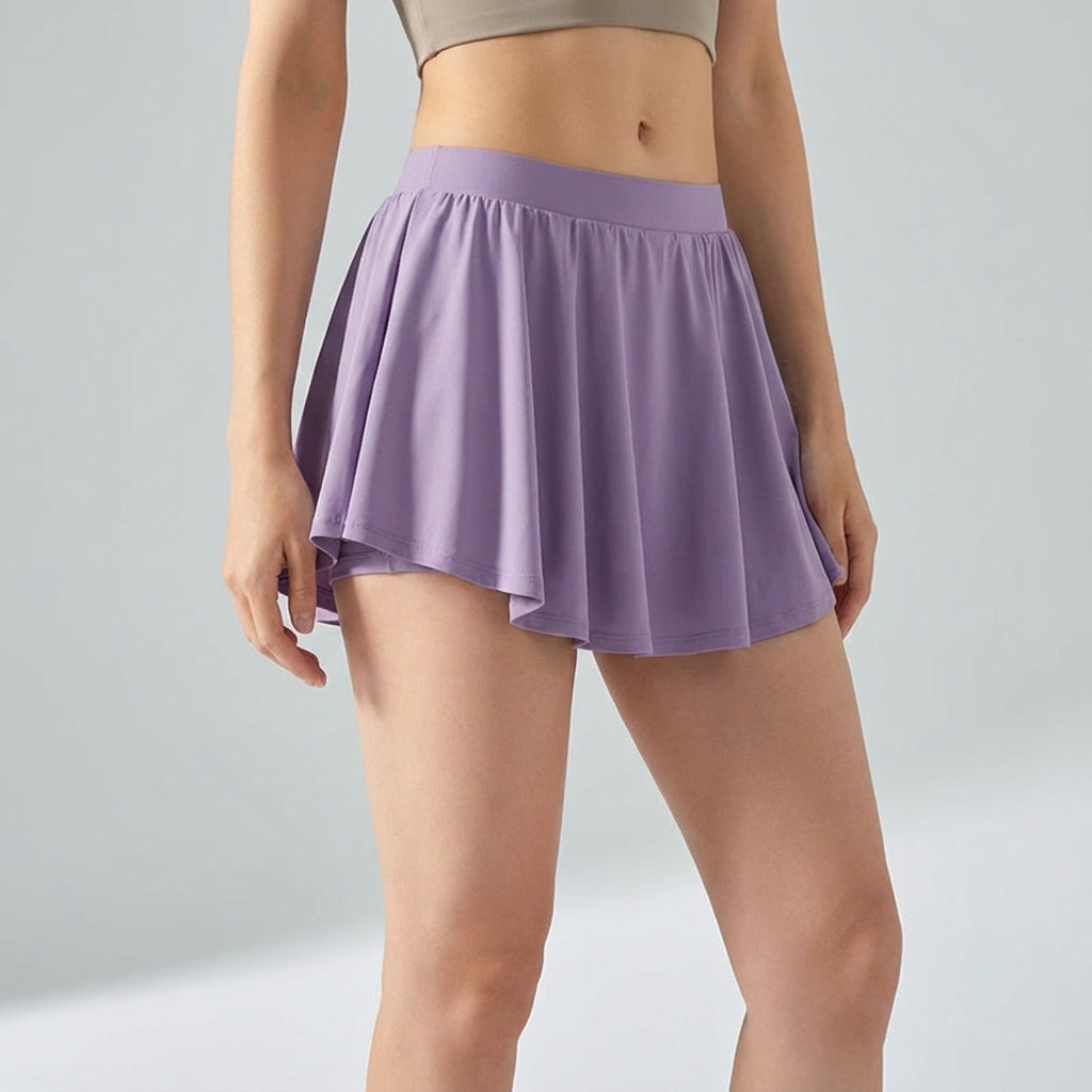 Zu enge oder unbequeme Röcke schränken Bewegungsfreiheit und Lebensfreude ein. Dieser kurze Rock löst das Problem mit einer weit schwingenden Form und einem elastischen Bund. Innenliegende Shorts sorgen für sicheren Halt und sorgenfreiheit bei jeder Bewegung. Atmungsaktives Material bleibt angenehm auf der Haut und begleitet dich den ganzen Tag.