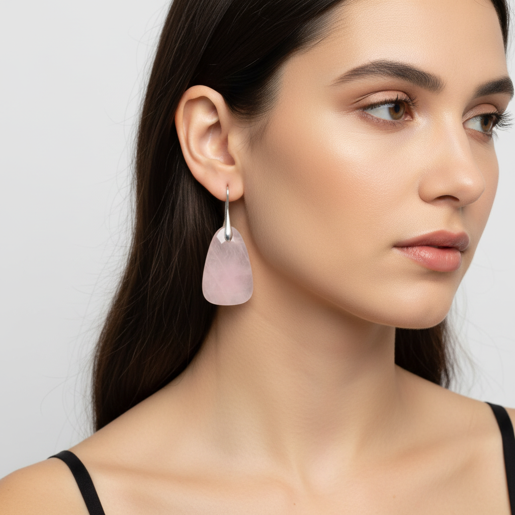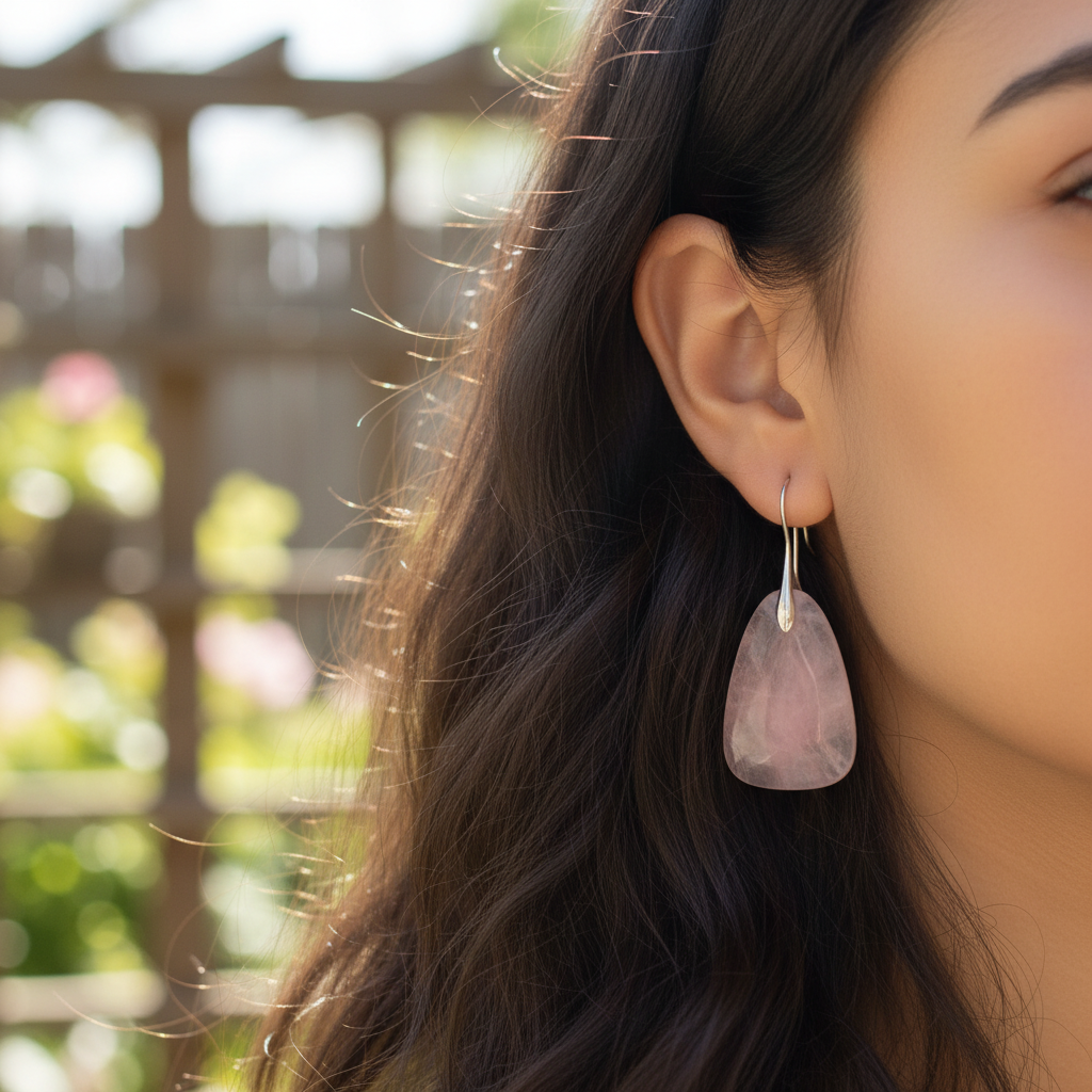 Rosenquarz steht für Liebe und Harmonie. Diese Ohrringe helfen, emotionale Balance zu finden.