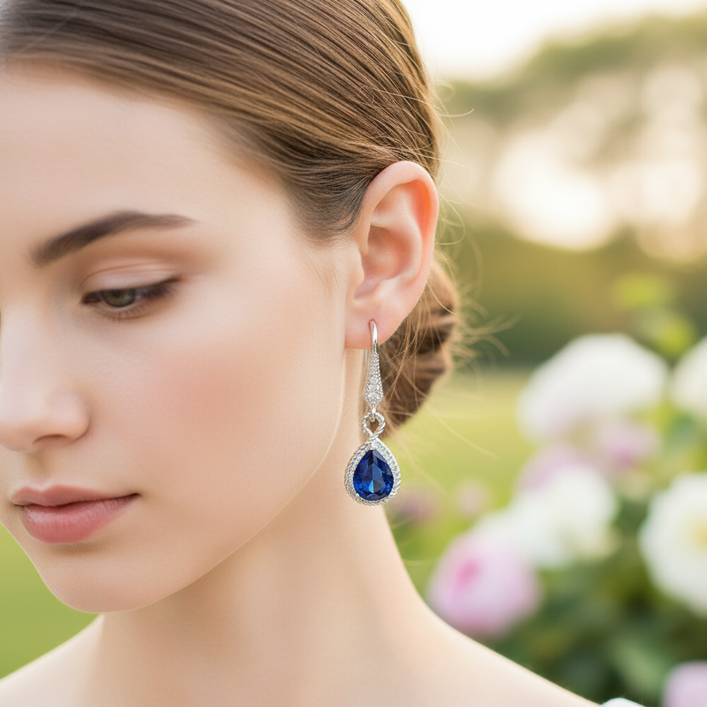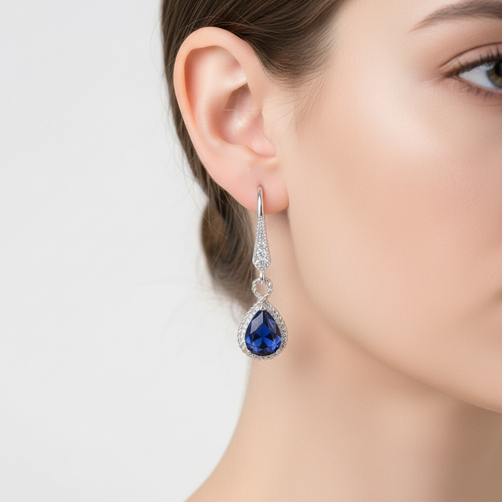 Das perfekte Accessoire zu finden, das Eleganz und Stil vereint, kann herausfordernd sein. Diese Ohrringe heben jedes Outfit dank ihres auffälligen Designs mit einem strahlend blauen Stein hervor. Ihr einzigartiger Teardrop-Look macht sie zur idealen Wahl für Events oder einfach für ein Date. Tragen Sie sie und spüren Sie den Charme, der Ihnen sofort mehr Selbstvertrauen verleiht.