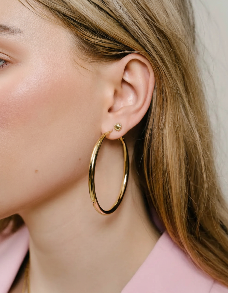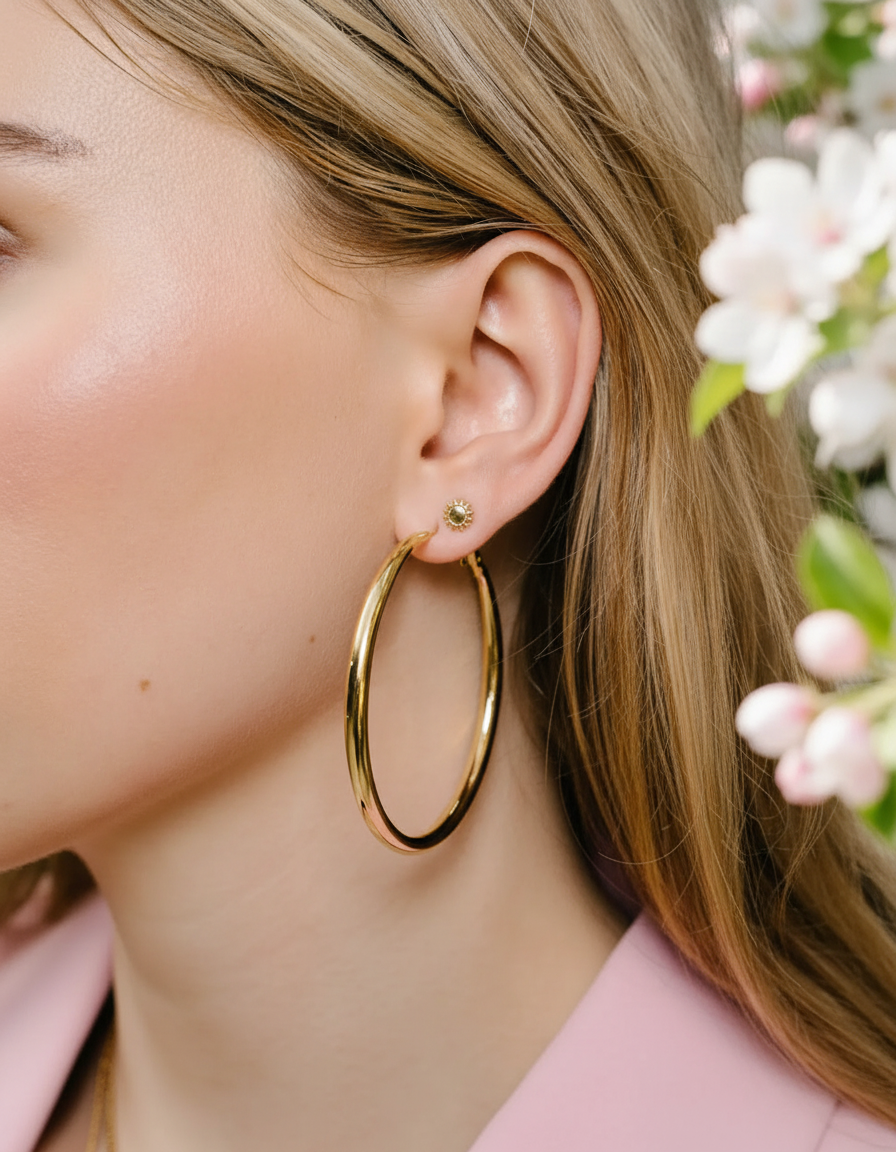 Setzen Sie mit einem Hauch von Glamour Akzente in jedem Outfit. Diese vergoldeten Creolen sind die perfekte Ergänzung für jede Gelegenheit.