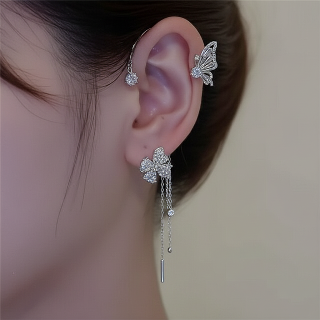 Die Suche nach glamurösen Ohrringen, die keine durchstechenden Ohrlöcher benötigen, ist beendet. Diese Ohrmanschetten bieten eine elegante und stilvolle Möglichkeit, Ihren Look zu vervollständigen. Sie sind leicht anzulegen und bieten den ganzen Tag über Komfort. Mit ihrem einzigartigen Schmetterlingsdesign und dem funkelnden Zirkonia stechen sie in jeder Menge heraus.