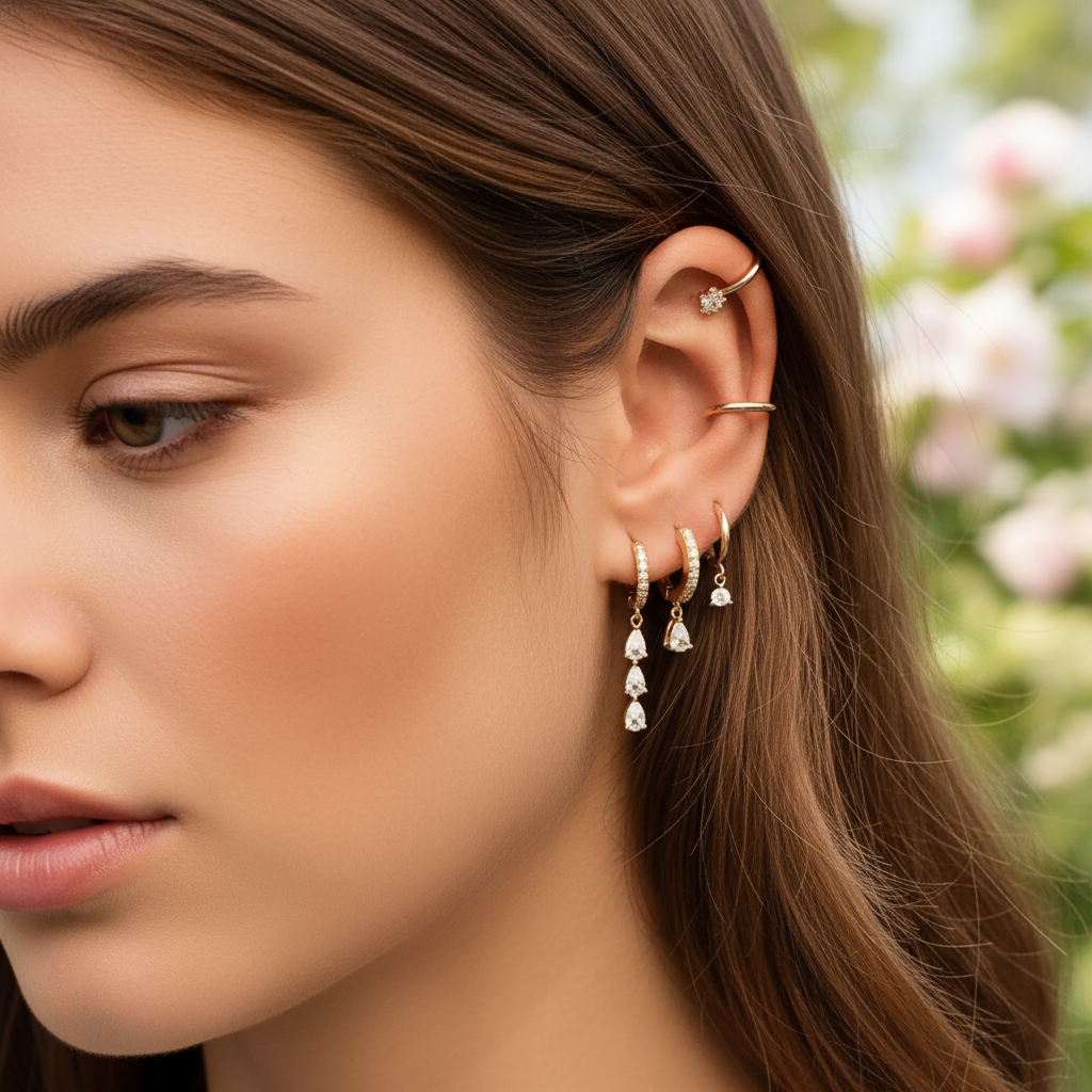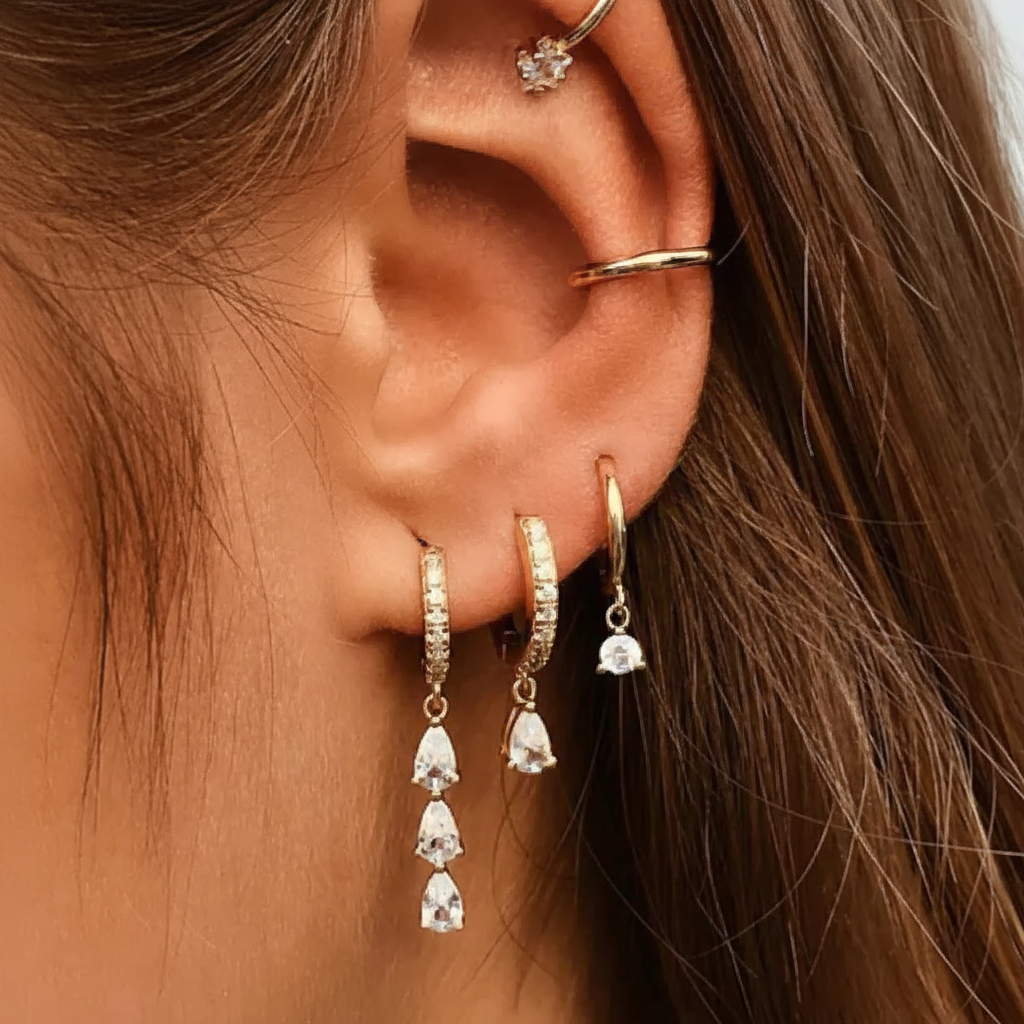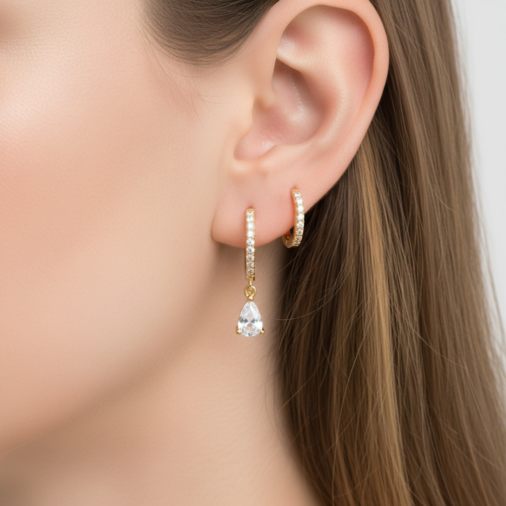 - Set-Inhalt: Kettenohrring, CZ-Hoop, klassischer Hoop