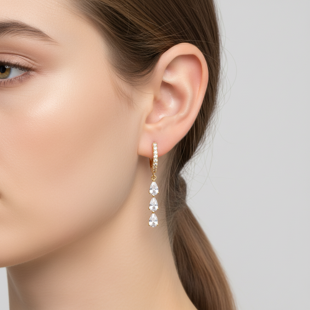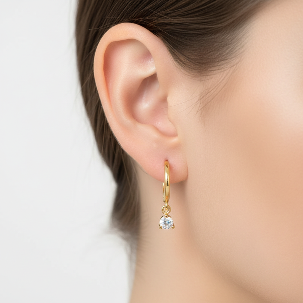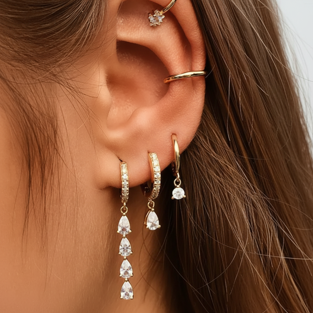 - Set-Inhalt: Kettenohrring, CZ-Hoop, klassischer Hoop