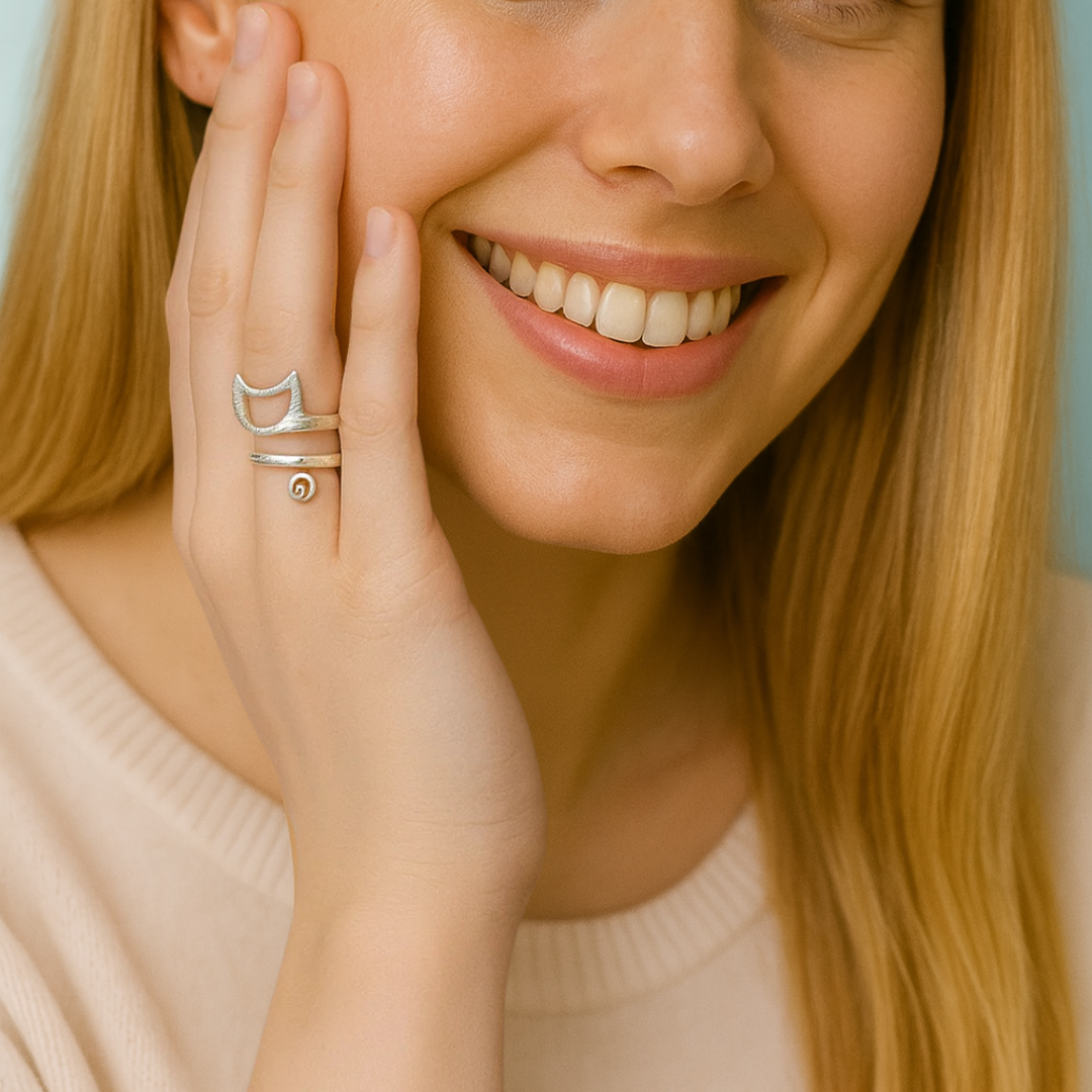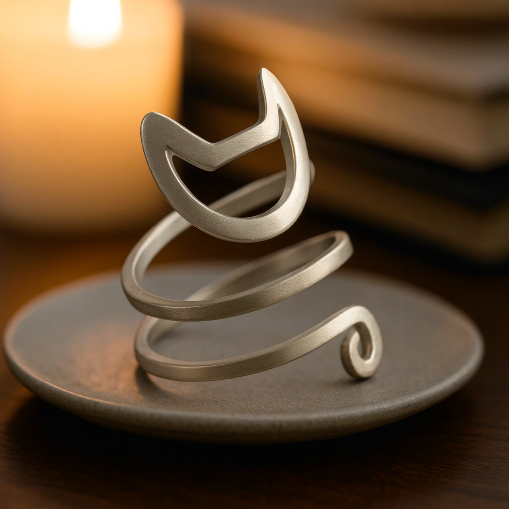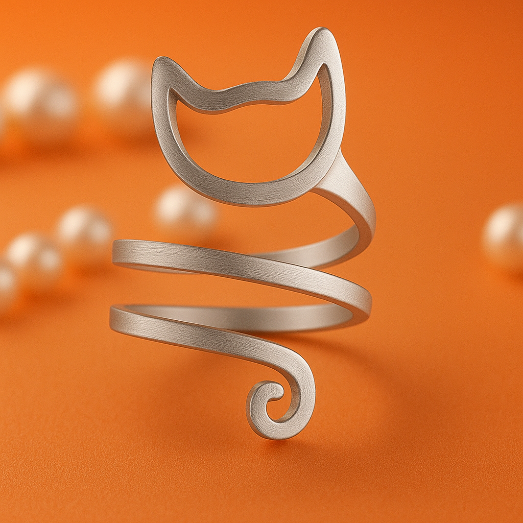 Verleihen Sie Ihrem Outfit eine Extraportion Charme mit diesem handgefertigten, silberfarbenen Katzenring. Das elegante, gedrehte Design kombiniert zeitlose Eleganz mit einer verspielten Katzenform – perfekt für alle, die ihre Individualität unterstreichen möchten.