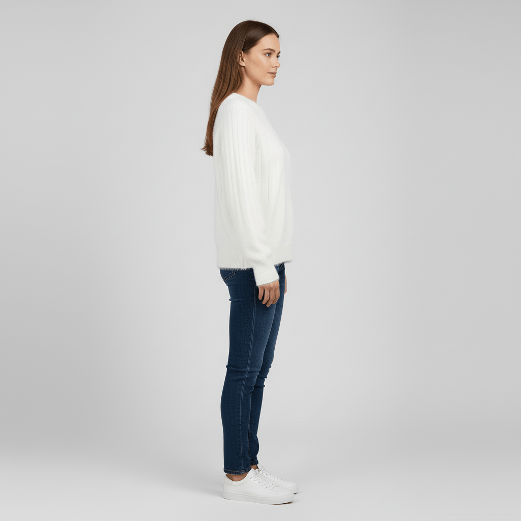 Einen Strickpullover zu finden, der sich weich anfühlt und trotzdem schick aussieht, ist gar nicht so einfach. Dieser Pullover vereint beides: ein angenehmes Tragegefühl direkt auf der Haut und einen klassischen Schnitt, der die Figur vorteilhaft in Szene setzt. Das vertikale Rippenmuster sorgt für eine dezente Struktur und verleiht dem Look eine moderne Note. Das Design lässt sich problemlos mit Jeans, Röcken oder mehrlagigen Outfits für Herbst und Winter kombinieren.