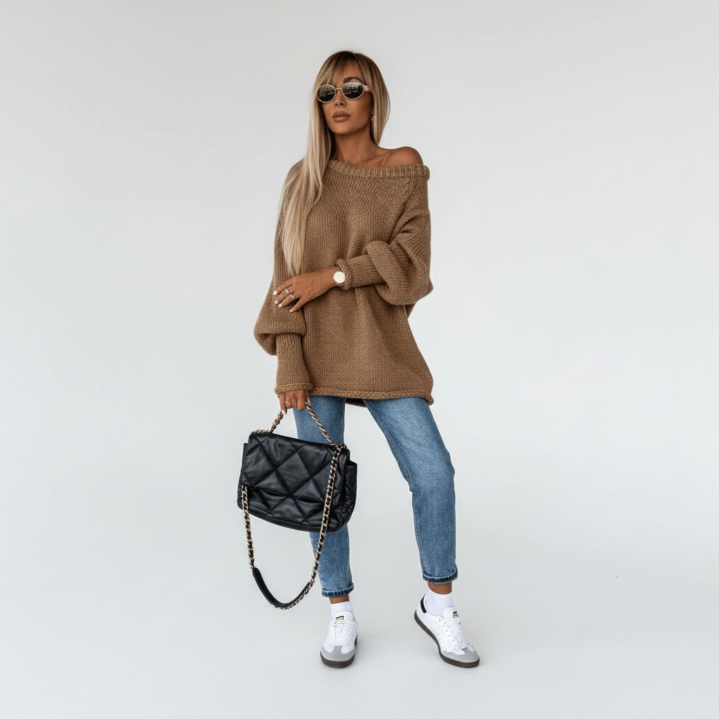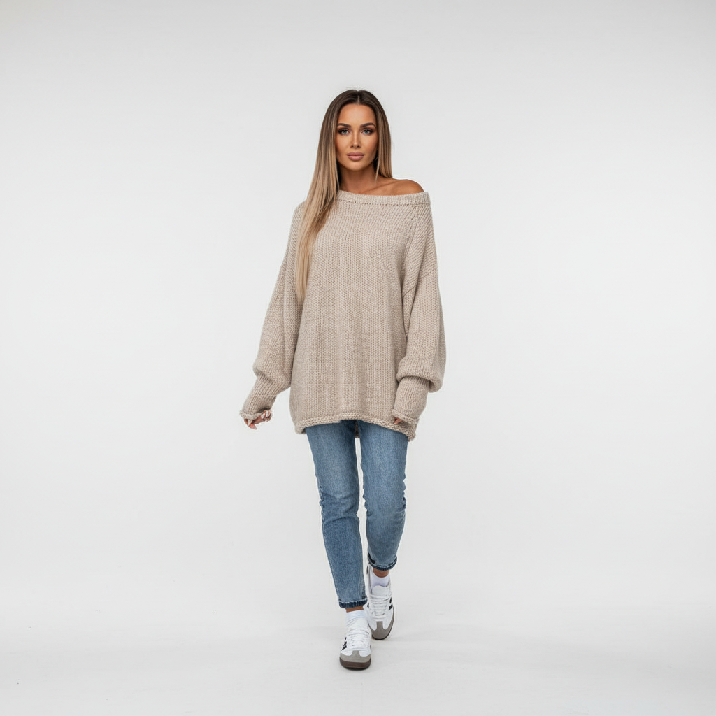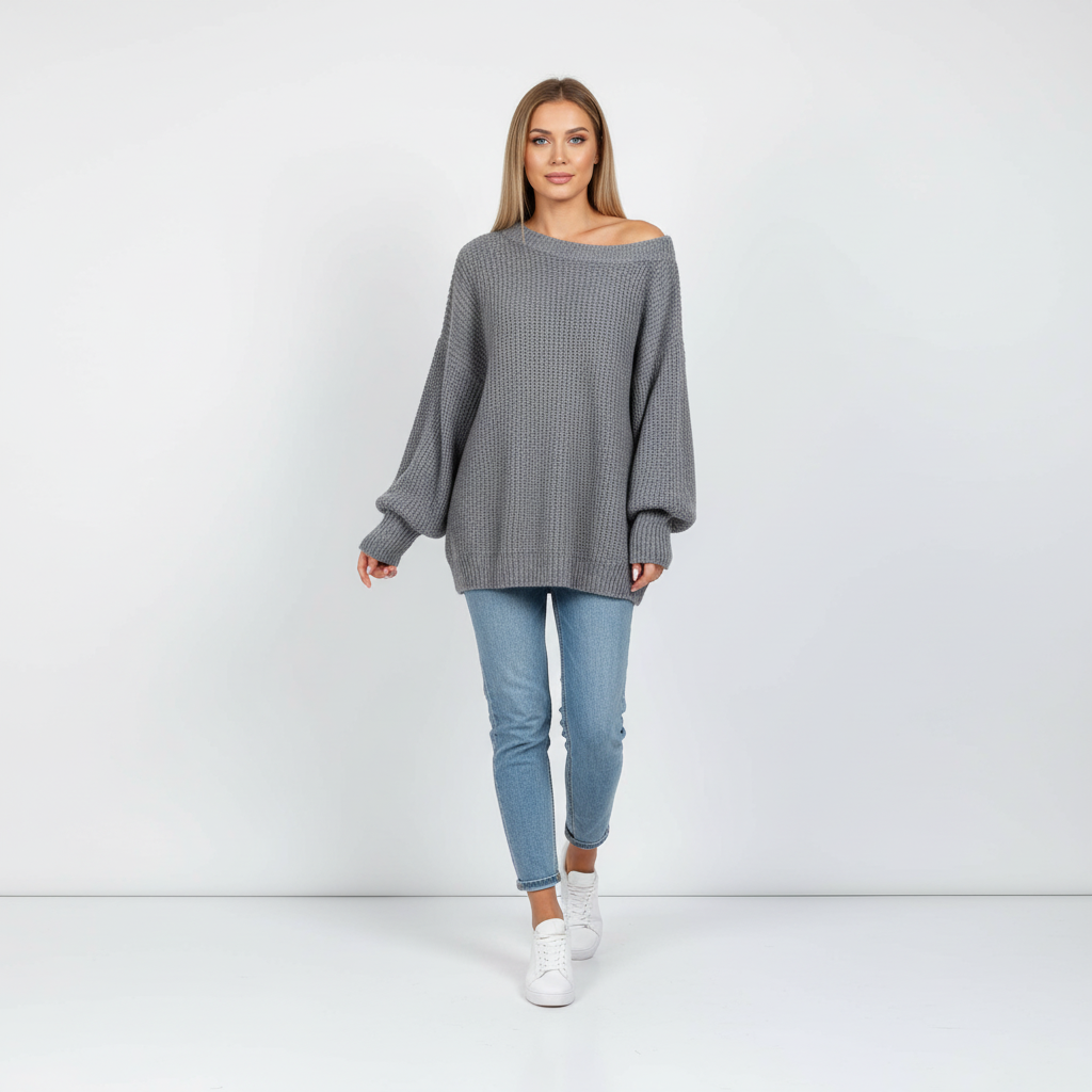 Die Suche nach dem idealen Pullover, der sowohl bequem als auch schick ist, hat ein Ende. Dieser gestrickte Pullover bietet ein modernes Off-Shoulder-Design, das jedem Outfit einen besonderen Touch verleiht. Mit seiner weichen und warmen Qualität ist er der perfekte Begleiter in der kühlen Jahreszeit. Egal ob zu Jeans oder Röcken, die entspannte Passform sorgt für ein angenehmes Tragegefühl.