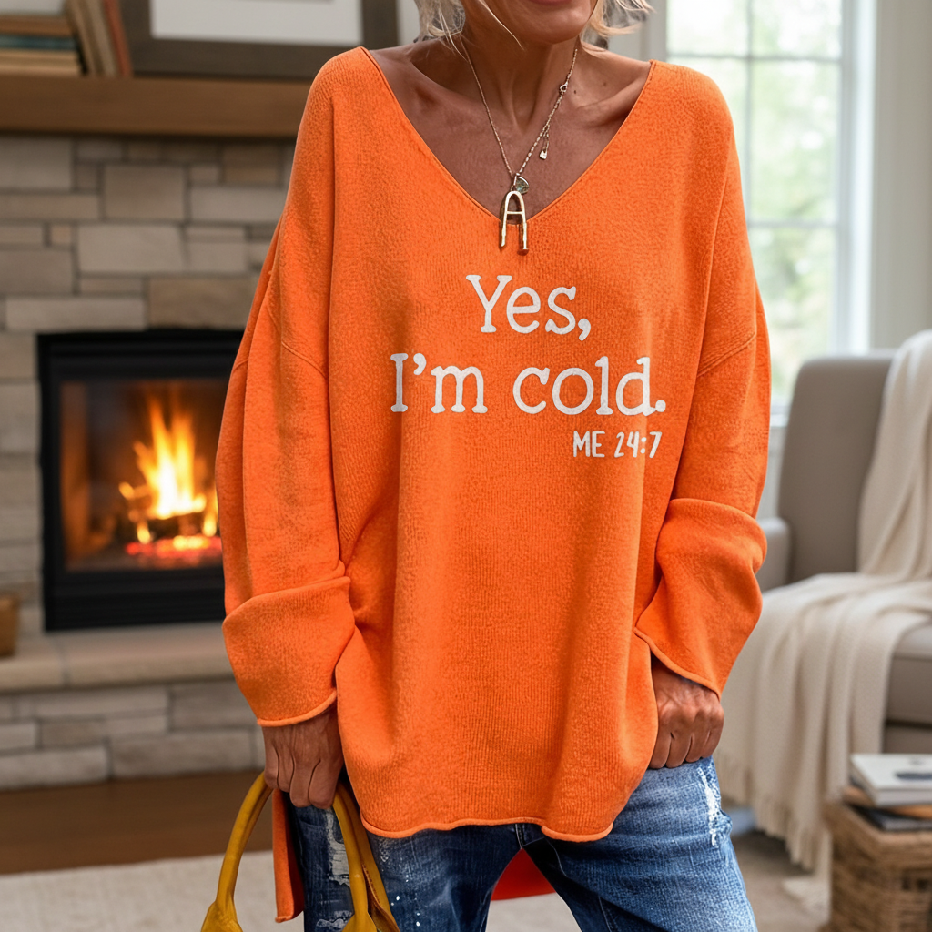- Stil: Oversized Pullover mit V-Ausschnitt