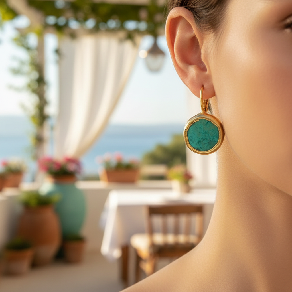 Das Finden des idealen Schmucks, der sowohl elegant als auch vielseitig ist, kann eine Herausforderung sein. Diese Ohrringe bringen eine harmonische Kombination aus Gold und Türkis in dein Outfit. Sie sind leicht und angenehm zu tragen, wodurch sie jeden Tag zur Freude werden. Perfekt für festliche Anlässe oder dein alltägliches Styling.