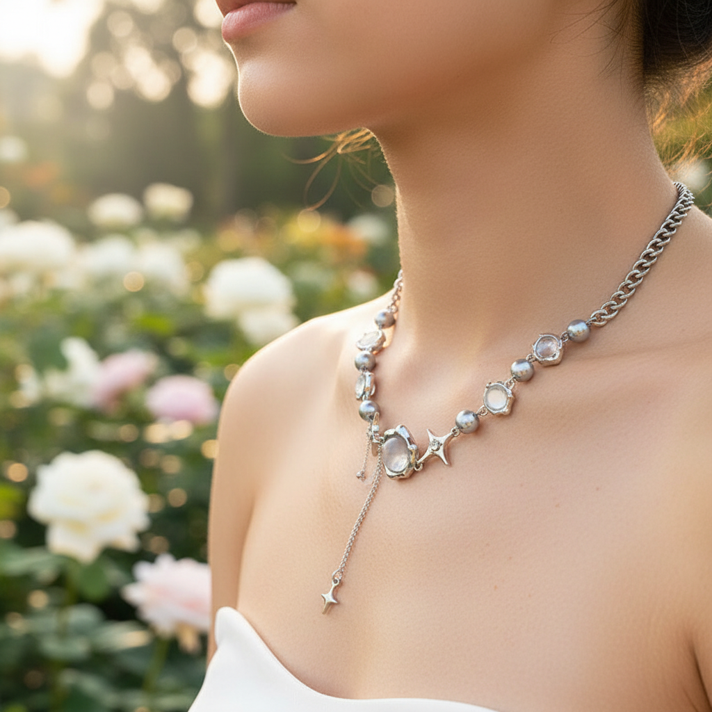 Die Halskette lässt sich flexibel anpassen. Egal, ob Sie einen lässigen oder eleganten Look wünschen, sie passt ideal.