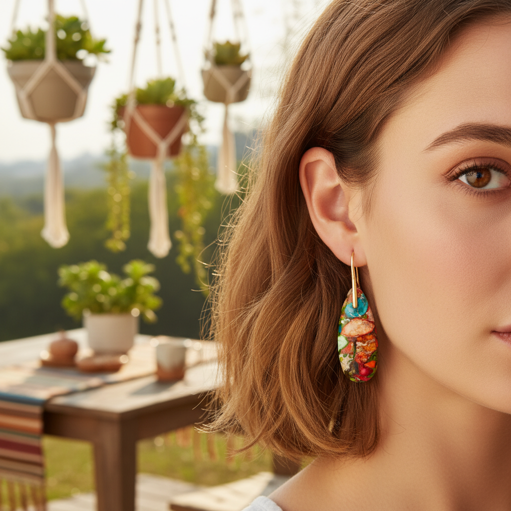 Entdecke die Kraft des Jaspis in zeitlosem Design. Diese tropfenförmigen Ohrringe sind nicht nur Schmuck, sie sind ein Ausdruck deines Stils und deiner inneren Stärke.